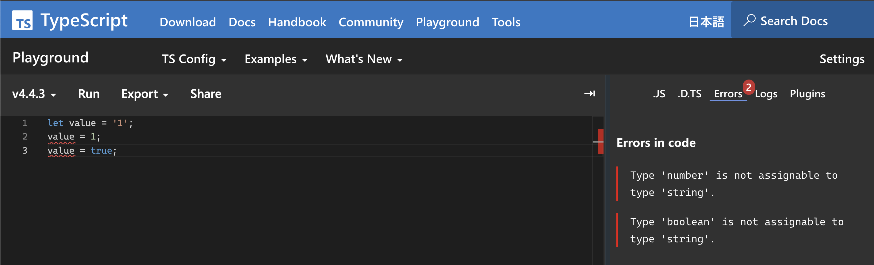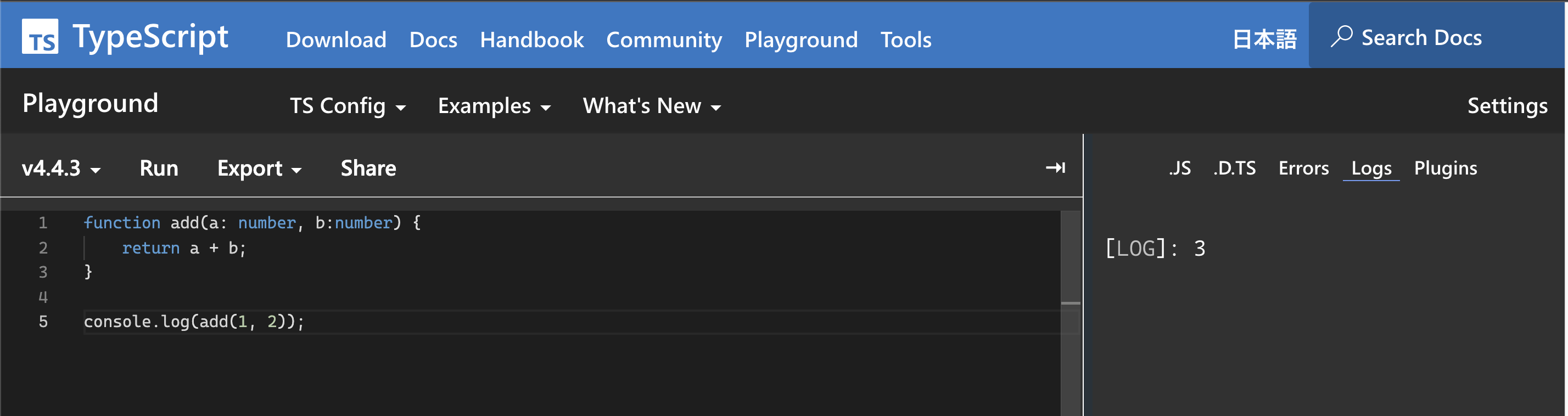 TypeScript Playground にアクセスすれば、すぐに使いはじめることができます。